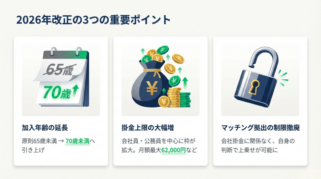 判断材料:2026年iDeCo改正の3つの重要ポイント
